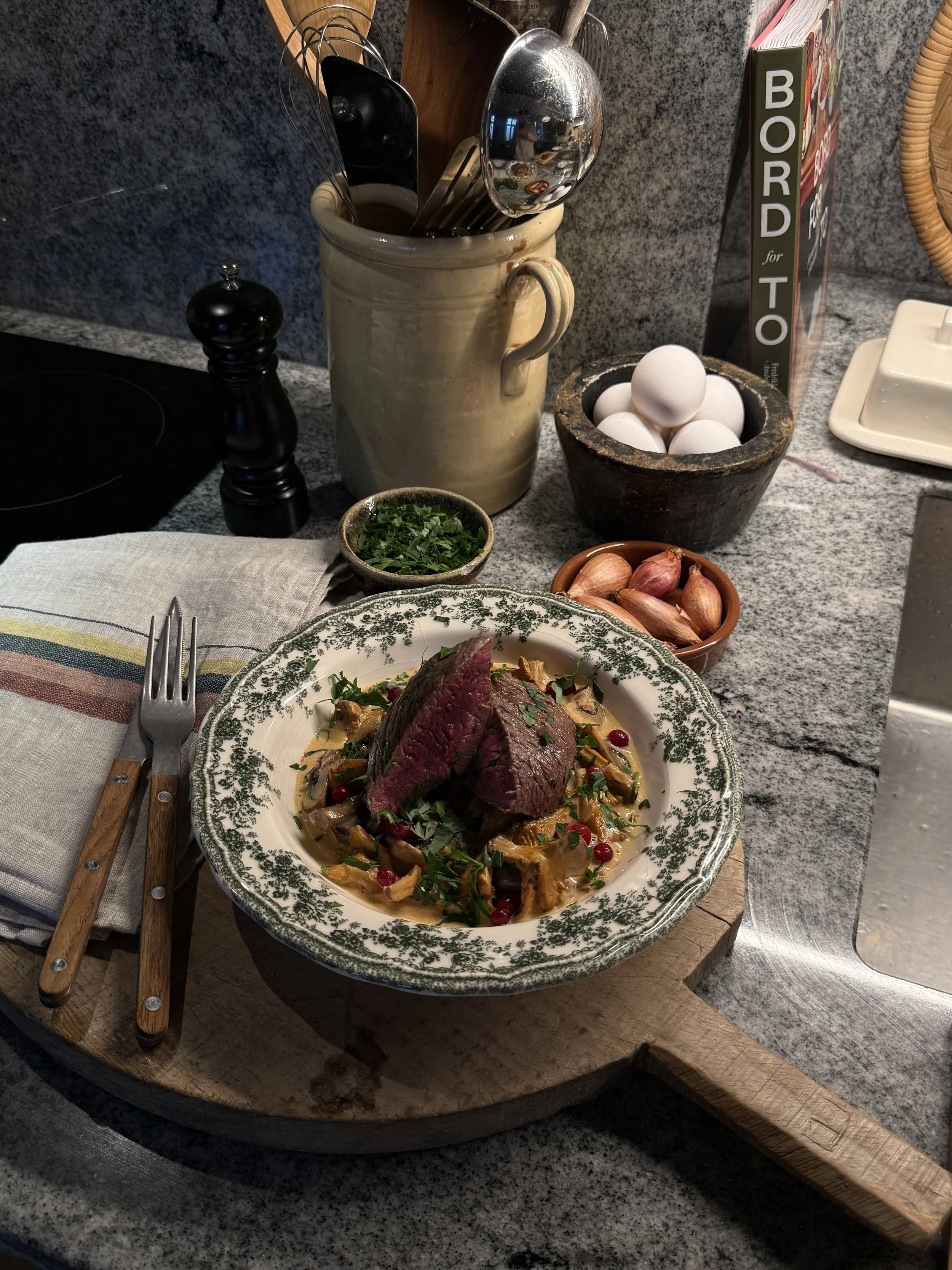 Hjortebiff med soppfrikassé