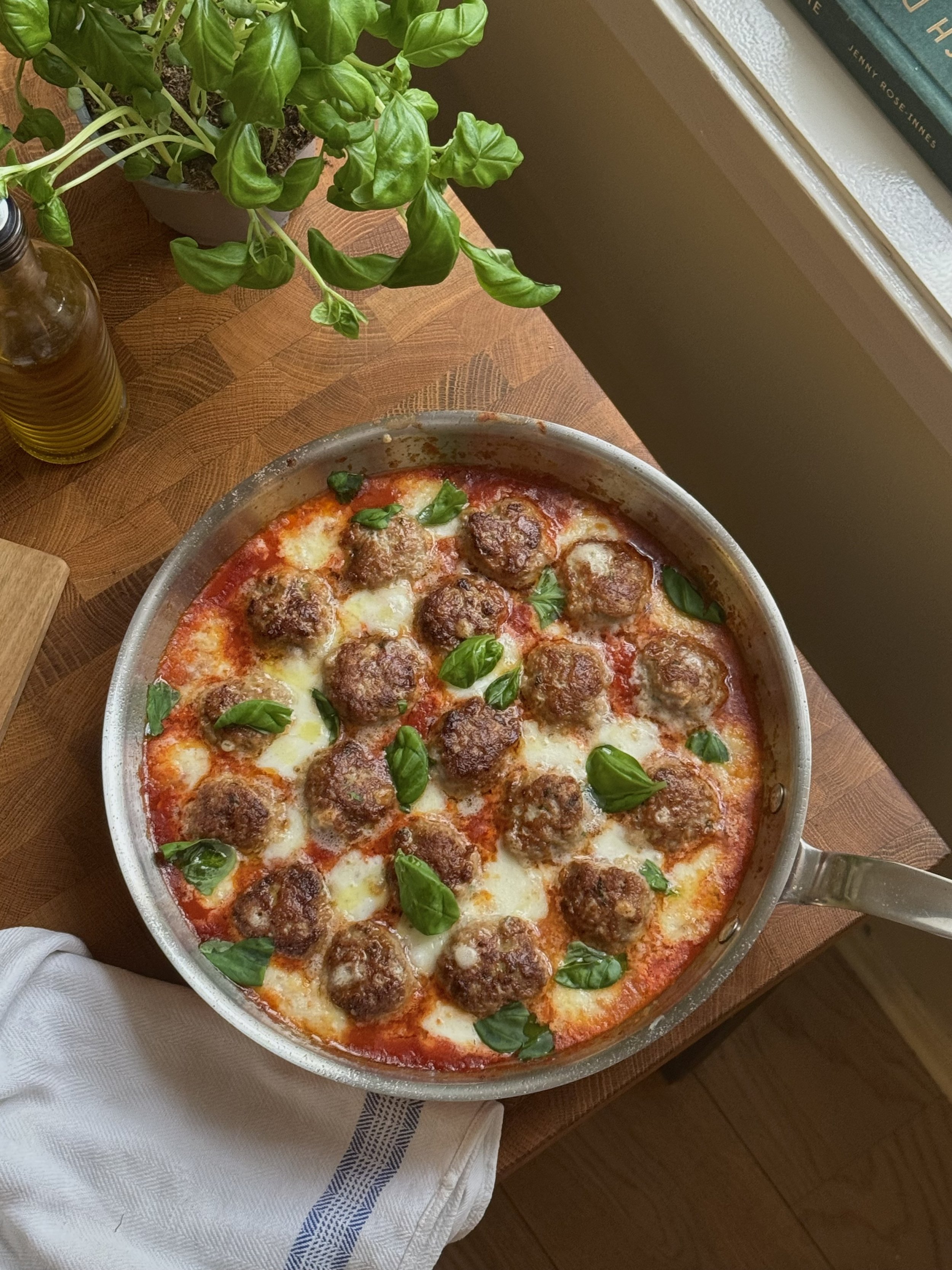 Det eneste som er bedre enn kjøttboller i tomatsaus, er kjøttboller i tomatsaus med små biter av smeltet mozzarella. Vi foretrekker hvitløk i sausen fremfor i bollene. Når hvitløken er bakt inn i kjøttbollene, får bollene en metallisk ettersmak, uansett hvor fint vi har hakket, revet eller knust hvitløken.