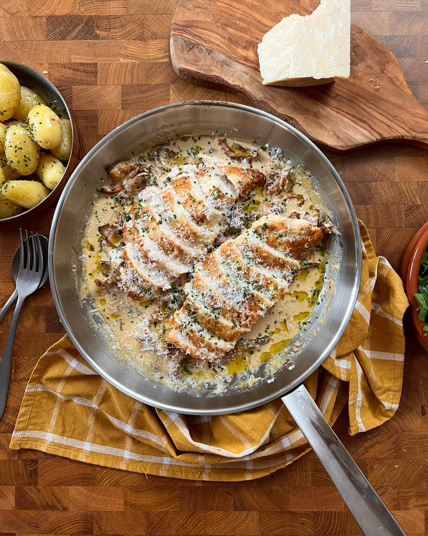 Med denne stekemetoden er du garantert saftige kyllingbryst. Og med denne kremete kantarellstuingen som tilbehør er du garantert en god og mettende middag.