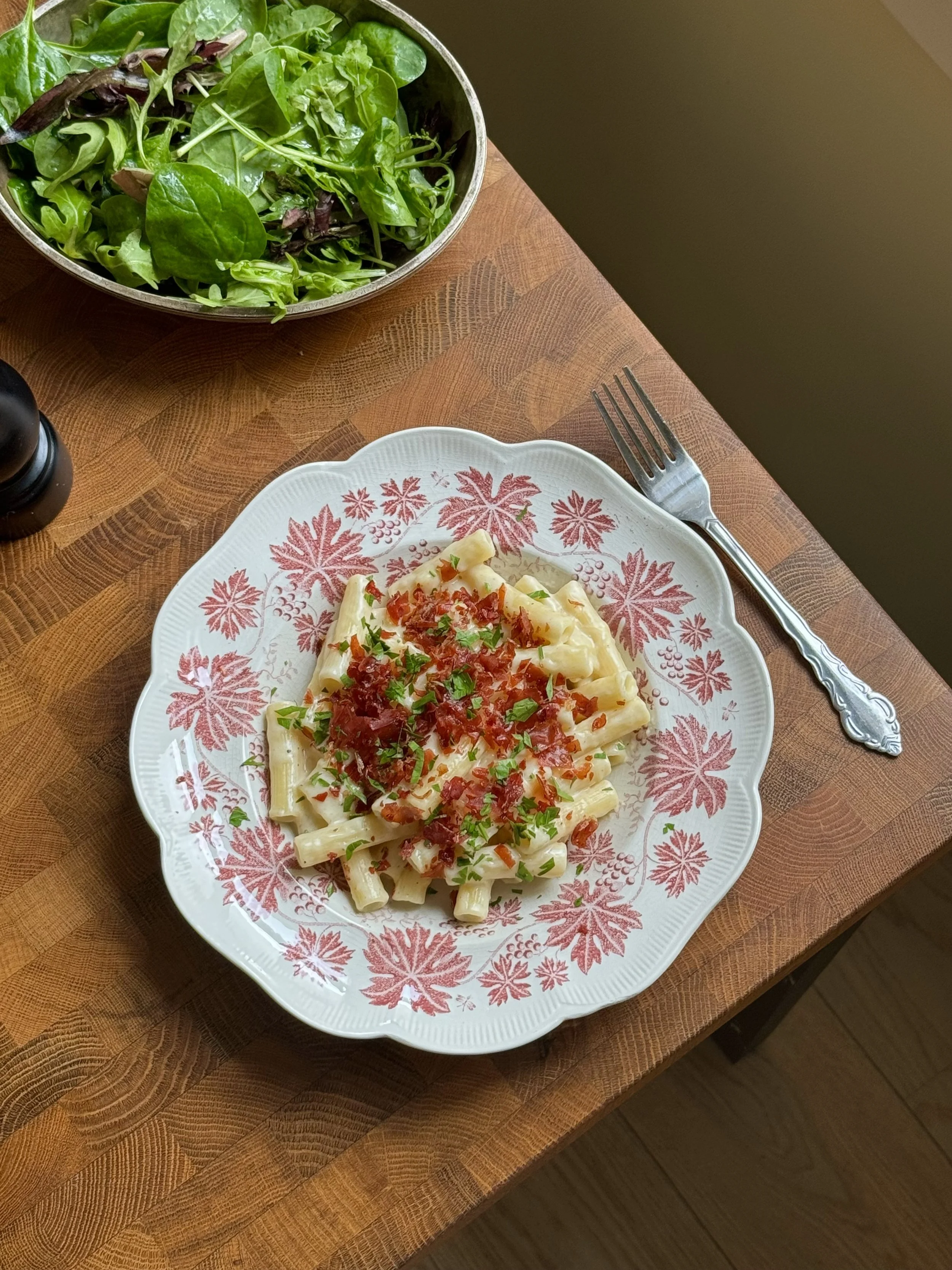 La oss ikke bruke tid på å diskutere om dette er en mac ‘n’ cheese eller en pasta i ostesaus. La oss heller bruke tid på å steke prosciuttoen sprø og vispe sausen jevn og fyldig. En syrlig grønn salat anbefales som tilbehør, for dette er mektige saker.