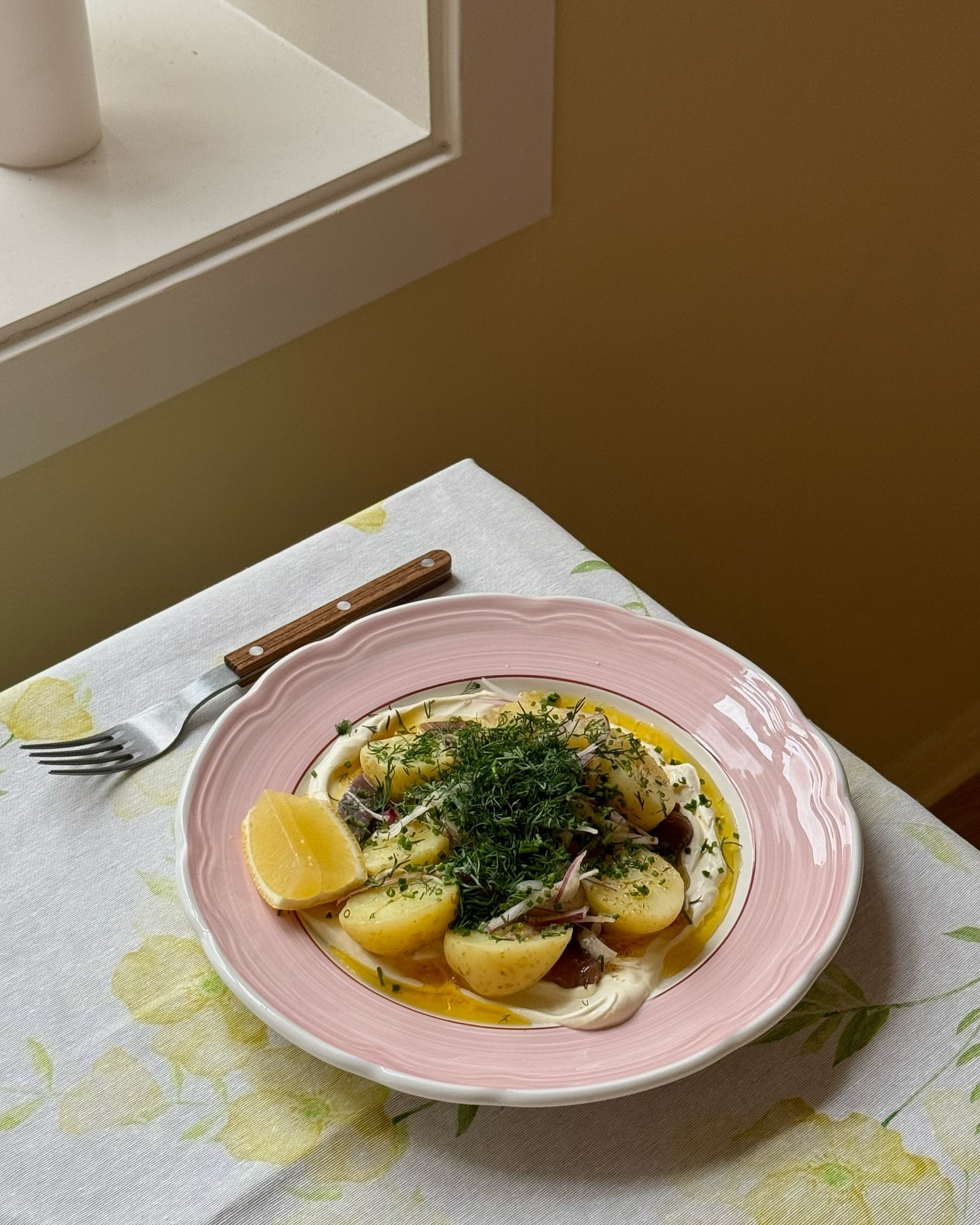 Denne sildesalaten er inspirert av en rett vi fikk servert under en midtsommerfeiring utenfor Gøteborg. Det er den beste silda vi har smakt, mye takket være det brunede smøret og de enorme mengdene med friske urter.